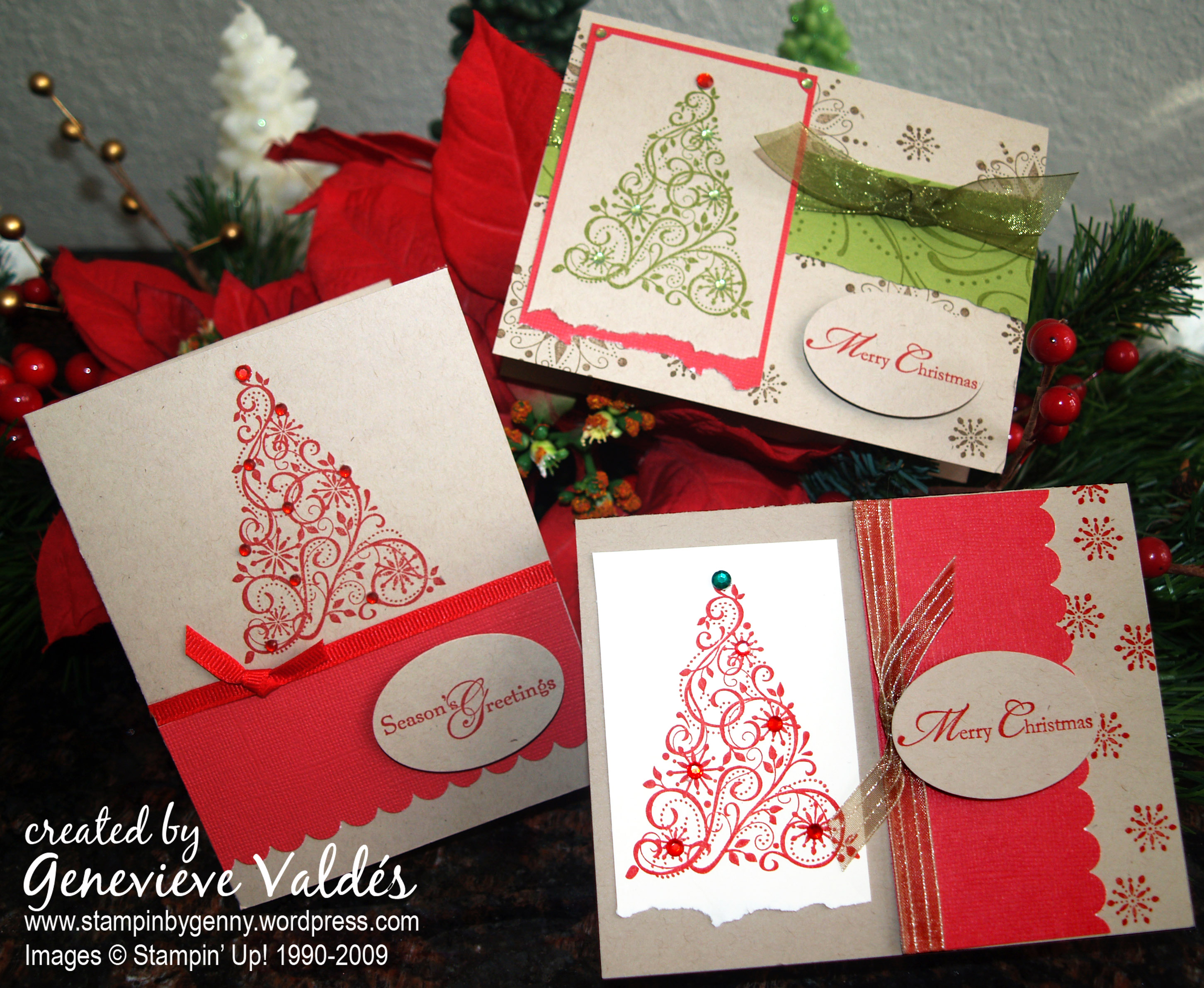Well as usual I am behind on my Christmas cards. But with the Snow Swirled stamp set I was able to make some elegant Christmas cards very quickly. I used the SU kraft brown paper and made each card with one ink color . Super simple! I hope you’ve already mailed your cards for the holidays and not doing it at the last minute like me.