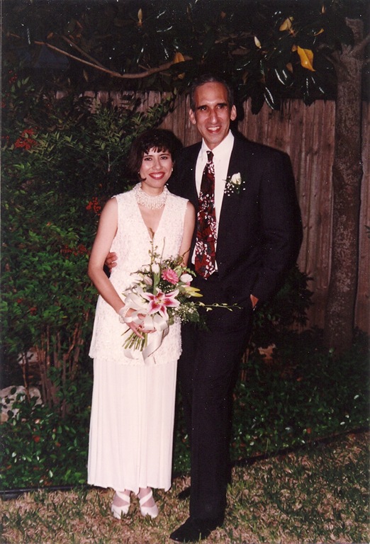 Because I’ve worked in retail as a buyer I never pay retail and always shop for the best price so when I got married in 1994 my wedding dress cost $80. The top was all beaded with pearls. I wanted a dress that wasn’t too traditional and one that was appropriate for an outdoor wedding. This is what I ended up purchasing. It’s actually a two-piece wedding dress.