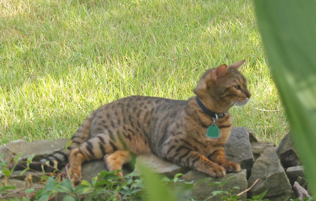 Our other two fur children were acquired because my husband felt there was too much estrogen in our home. So Rocco and Franco were added to our family. They are two Bengal cats. He wanted these cats because they are very athletic, loyal and known to follow their owners around like dogs. They spend part of the day outside and are brought in around 3 pm. When my husband is outside working in the garden they do follow him around. Too bad they don’t help.
