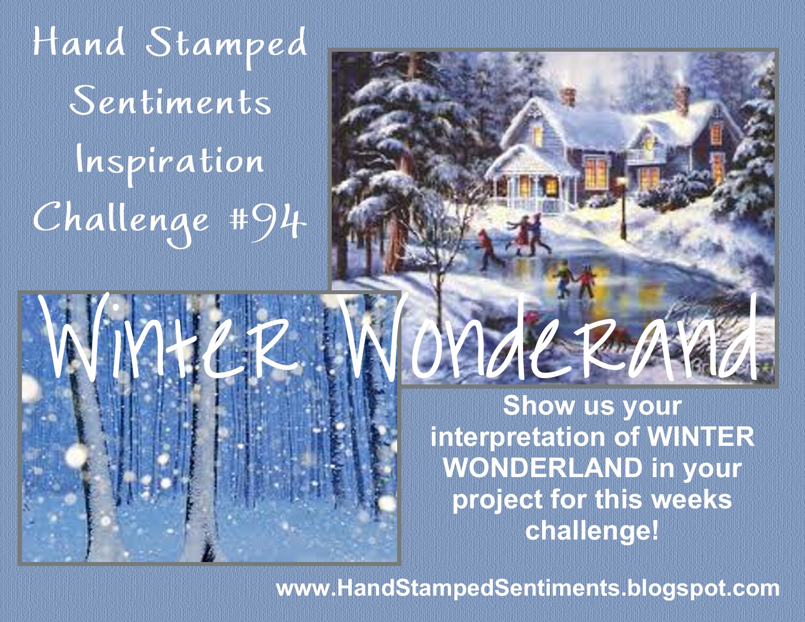 This week at Hand Stamped Sentiments we have a Winter Wonderland inspiration challenge.  When I saw the inspiration photo it made me think immediately of snowflakes so I created this snowflake wreath card.