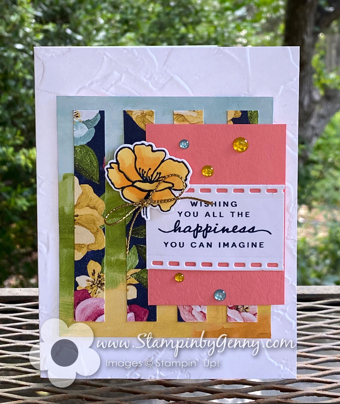 Filed under: Hand Stamped Sentiments Creative Challenge, Sketch Challenge, Wedding Cards | Tagged: Genevieve Valdes hispanic spanish speaking stampin up demonstrator, Stampin up cards, Stampin Up Happiness abounds card ideas, Stampin up Happiness abounds cards, Stampin Up Hues of Happiness Suite, Stampin up Hues of Happiness suite card ideas, Stampin up painted texture 3D embossing folder, Stampin Up wedding cards |