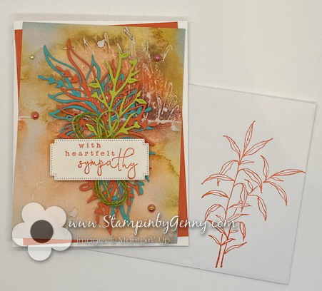 My card this week is based on Hand Stamped Sentiments color challenge of Calypso Coral, Lemon Lime Twist and Summer Splash. I used the Thoughtful Journey stamps, dies and paper to create this sympathy card.