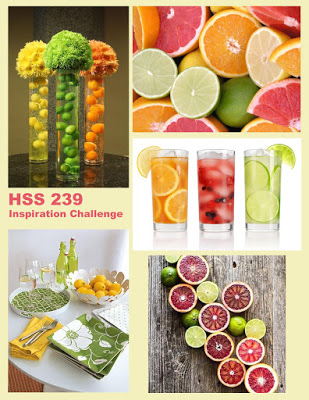 This week’s challenge at Hand Stamped Sentiments is an inspiration challenge. The photo of all the citrus inspired me to create this card.