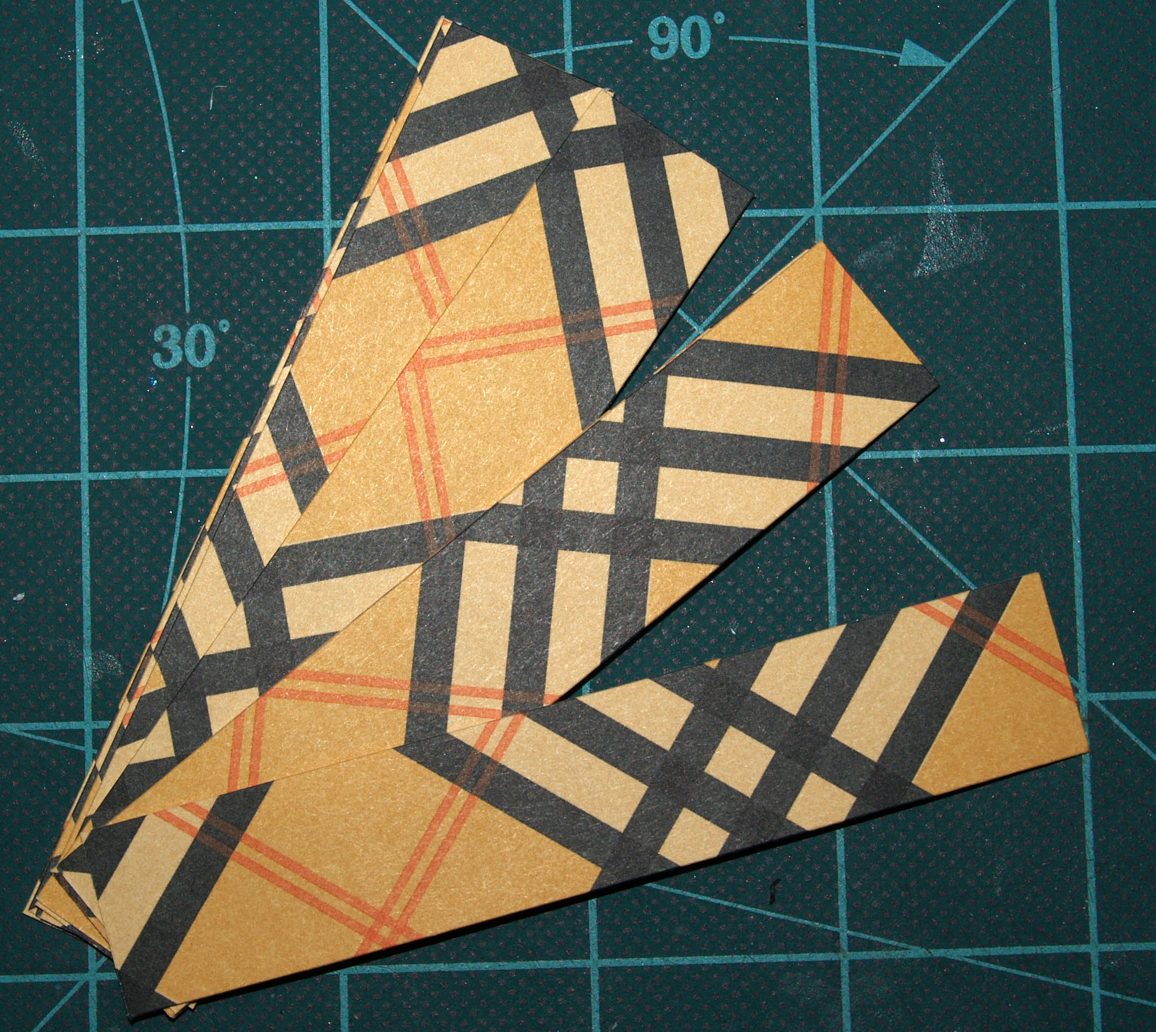 Stack your paper strips then punch with the Crop-a-dile worked at both ends. Insert your brads. To help the pumpkin stand better I inserted the smaller brad with the prongs opposite the larger one.