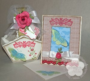 This week’s Hand Stamped Sentiments challenge inspired me to create these corset cards. I hadn’t made these in a long time and have dry embossed them. These versions I decided to heat emboss with two different floral patterns. Which one do you prefer? The small or large floral?