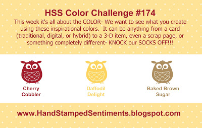 You too can join the challenge at Hand Stamped Sentiments and be inspired by the HSS Design Team.