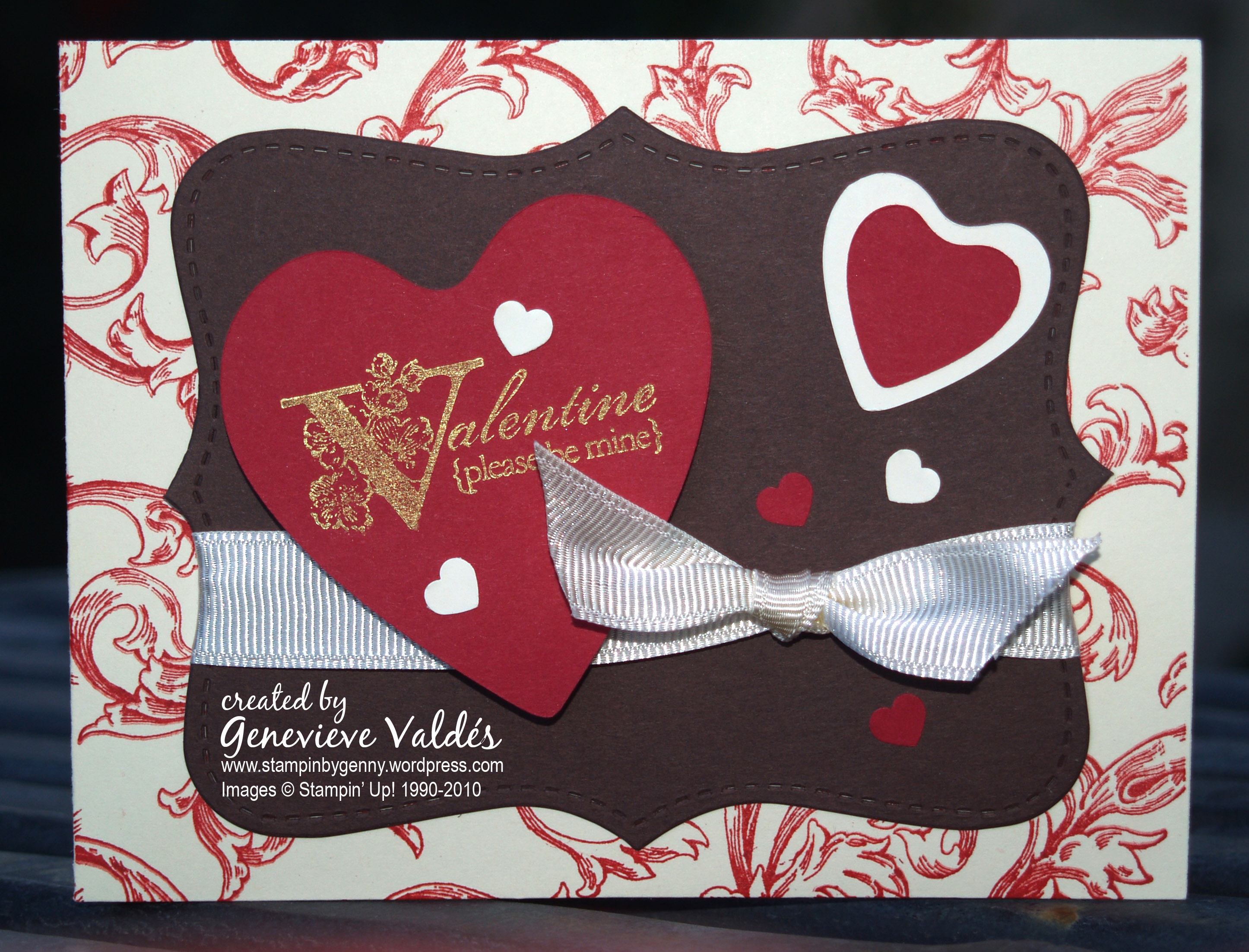 Accessories: Decorative Label Punch, Small Heart Punch, 1-3/4″ Circle Punch, Antique Brads, Black Satin Ribbon, Basic Rhinestones Jewels, Basic Pearls, EK Success Fleur De Lis Edge Punch