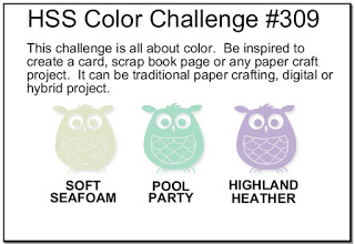 The card I created was inspired by the color challenge of Soft Sea Foam, Pool  Party and Highland Heather at Hand Stamped Sentiments.